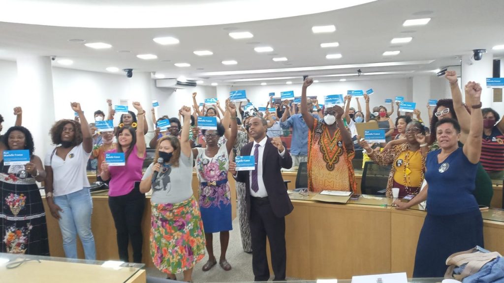 Na manhã dessa quarta-feira (16/03), foi realizada na Câmara Municipal de São Gonçalo, uma sessão solene para a entrega do Título de Mérito Marielle Franco de Direitos Humanos para diversas mulheres negras de São Gonçalo.
