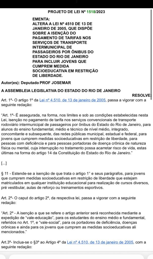 PL 1518/23 – Dispõe sobre isenção de tarifas de transporte intermunicipal para incluir jovens que cumprem medidas socioeducativa