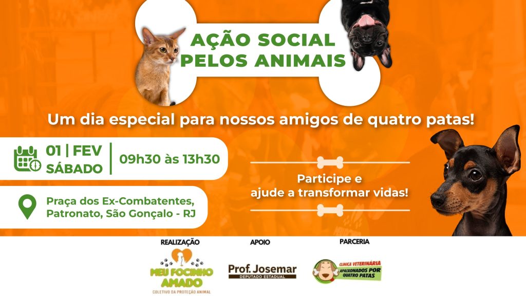 SÁBADO que vem, dia 1º fevereiro: Ação pelos animais em São Gonçalo